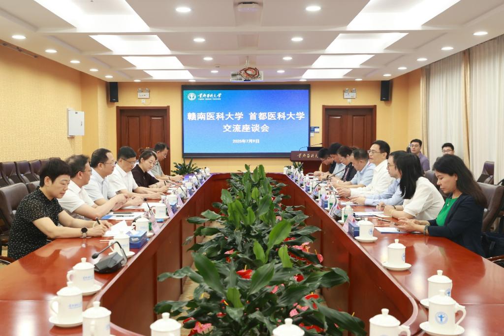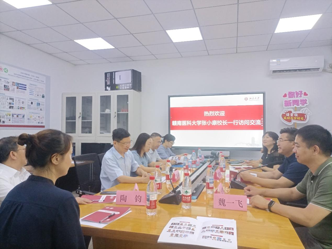 张小康介绍了我校发展概况、优势特色以及在相关领域取得的进展与面临的挑战。他表示,首都医科大学作为我国医学教育、科研和医疗服务的“国家队”,其先进的办学理念、显著的办学成就和宝贵的实践经验非常值得学习借鉴。希望通过此次交流拓宽视野,为赣南医科大学未来的发展提供了新思路,并以此次访问为契机,进一步搭建两校常态化交流机制。